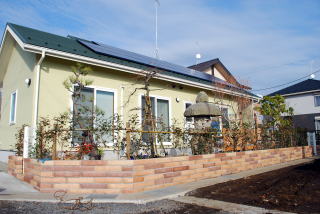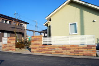 ブロックは、ESBICのベスロックを2色混ぜて使用しております。庭側は、フェンスの変わりに